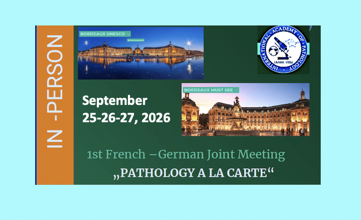 German & French Divisions-IAP Meeting with Experts covering large topics of Pathology-Sept 25-26-27, 2026 Bordeaux/France